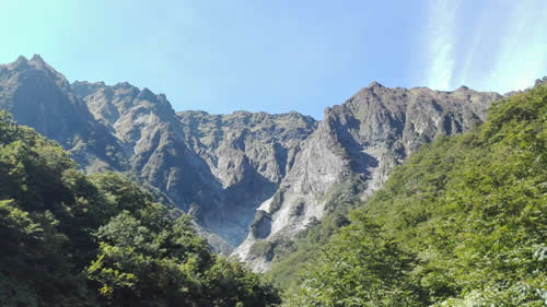 芝倉沢から見る、堅炭岩と武能岳。